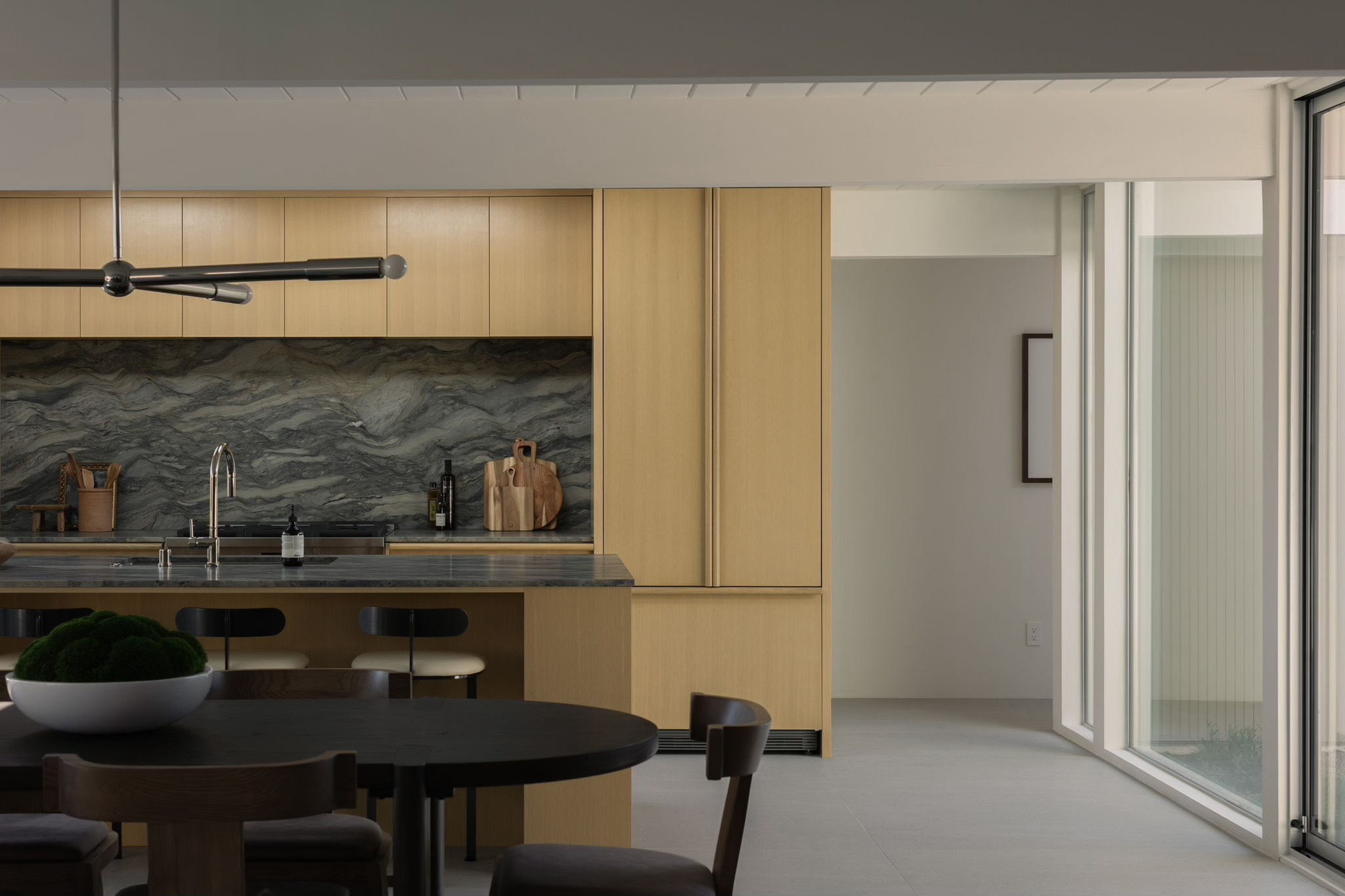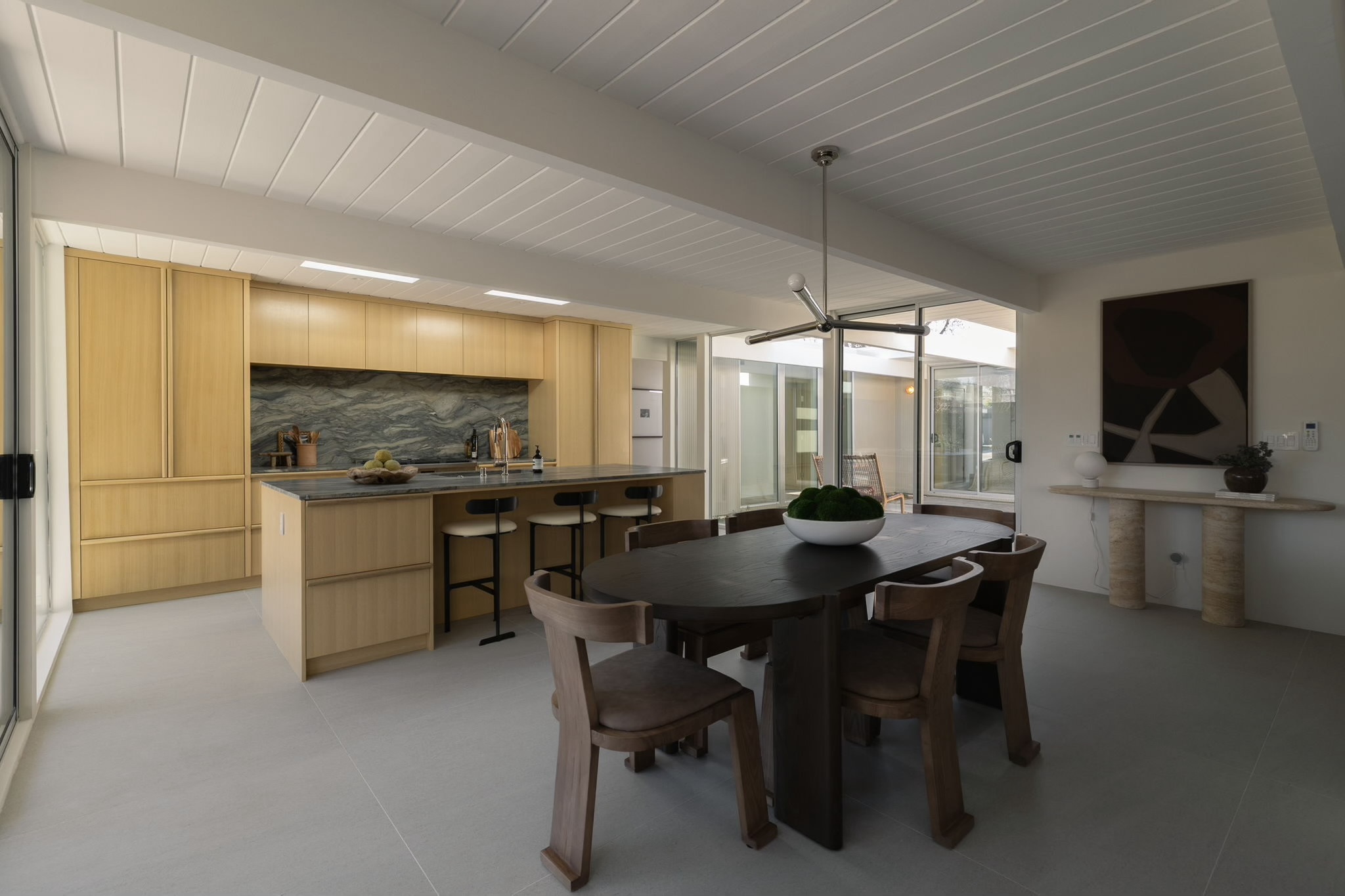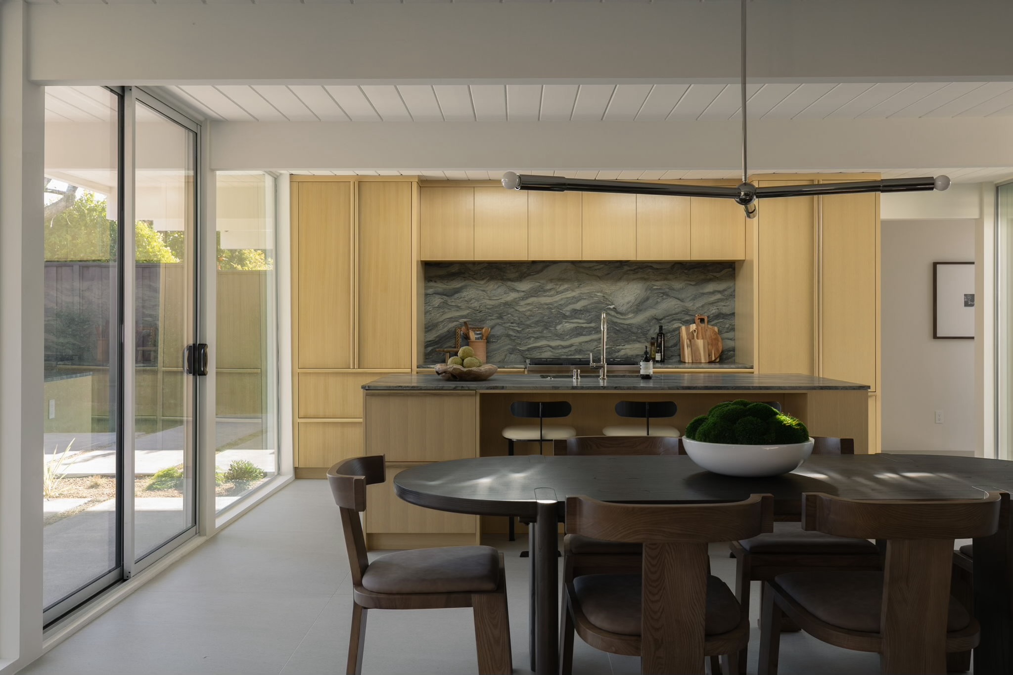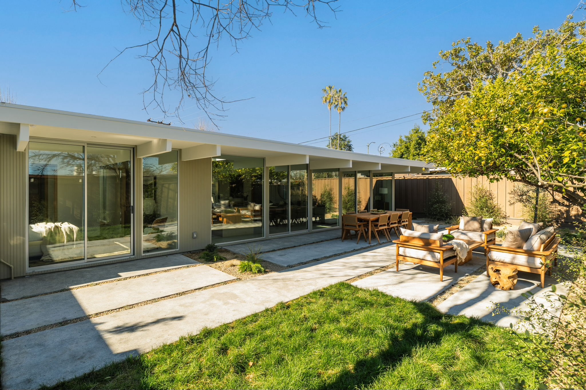 2256 Fairhill Lane is a rare Willow Glen offering, set within the highly regarded Fairglen enclave and rooted in the legacy of a true Eichler. Spanning approximately 1,755 SQFT, this 4 bedroom, 2.5 bath residence has been fully rebuilt and completely modernized, while honoring the architectural purity and cultural significance that define Eichler design. Taken down to the studs and reimagined from the inside out, the home features all new systems throughout, including plumbing, electrical, HVAC, roof, insulation, drywall, sewer and water lines, windows, doors, siding, surrounding hardscape and more. True to its Eichler heritage, walls of floor to ceiling glass surround the classic center atrium, allowing natural light to flood the interiors and creating a seamless connection. Thoughtful upgrades elevate everyday living, from Bosch appliances and custom white oak cabinetry and interior doors, to a smart five zone mini split HVAC system designed for comfort and efficiency. The home is discreetly future ready with pre wired fiber, Unifi hardwired cameras and access points, Nest Yale smart deadbolt, tankless water heater, 240V car charging, and smart irrigation system. The property is surrounded by a close knit community known for its block parties and genuine neighborly connection.